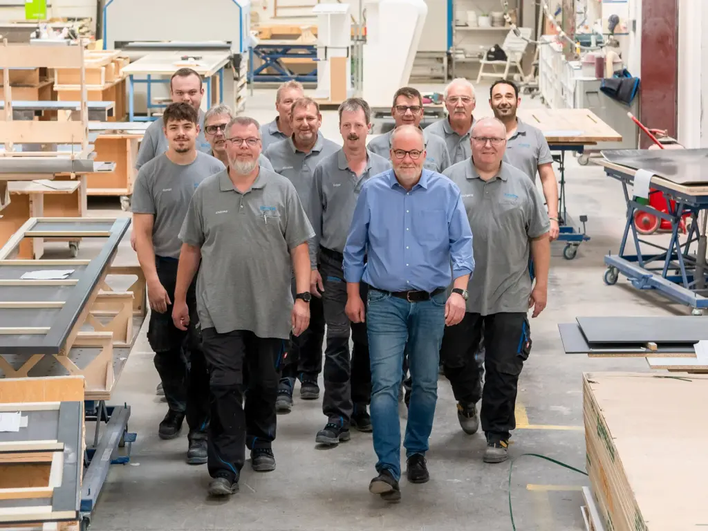 Nothing is more important in a project than talking to each other. That's why we speak your language. Specifically, your everyday language, because we come from the industry. The project managers you speak with are experienced master carpenters, HF technicians, FH timber construction engineers, or business administrators. This saves explanations and leads us to a common solution more quickly. To secure our connection to the future, we work closely with universities and continuously train interns. This way, we bring the latest research knowledge into the company and pass it on immediately. But what will truly connect us is the joy in our work and the use of fascinating materials. This also ensures a strong team spirit within our company and that we have an above-average number of long-serving employees. For you, this means: Stable, familiar contacts who know and accompany your company and its history over the years.